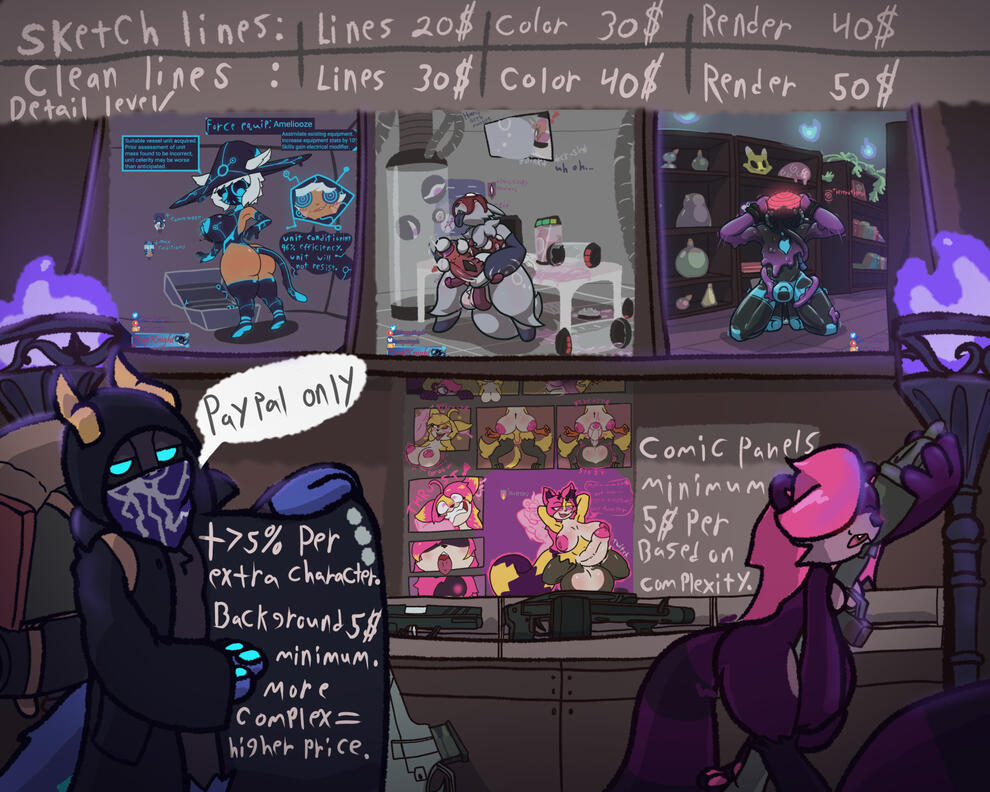 Commission sheet, commissions chosen from the discord server 99% of the time.